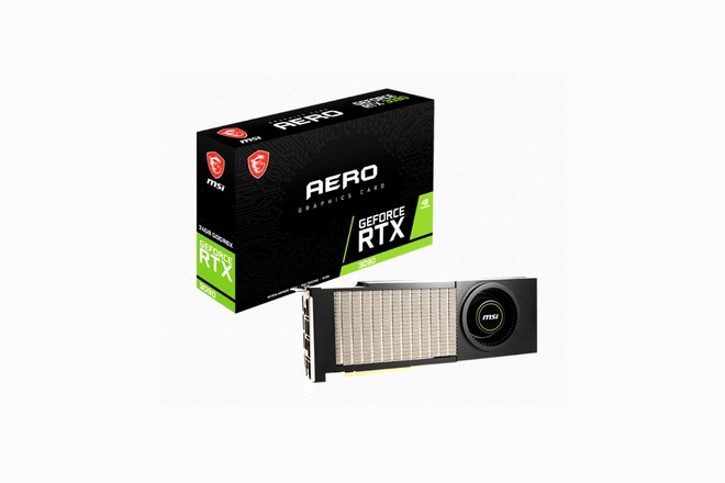E’ il caso per esempio di MSI che ha annunciato la GeForce RTX 3090 Aero, soluzione che si basa sulla top di gamma NVIDIA e che utilizza appunto una sola ventola posta sulla parte anteriore del PCB; quest’ultima aspira l’aria dall’interno del case e la espelle dalla parte posteriore, caratterizzata da generose feritoie. A prima vista non sembrerebbe una soluzione sufficiente per una GPU come la RTX 3090, tuttavia notiamo che MSI ha implementato un robusto corpo lamellare, completamente scoperto per garantire una migliore dissipazione del calore.