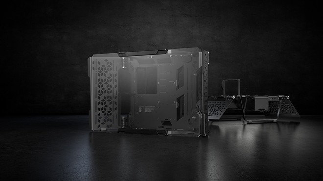 Iniziamo con i case, settore dove Cooler Master è tra i leader di mercato e che, in questa occasione, vede l’azienda mostrare i prototipi di prodotti come il nuovo MasterFrame 700, un case “open-air” che può trasformarsi in un banchetto da test, offrendo diverse possibilità di personalizzazione, supporto per hardware di ultima generazione, impianto a liquido e, non per ultimo, il supporto VESA 100×100 che permette di “appendere” il nostro sistema.