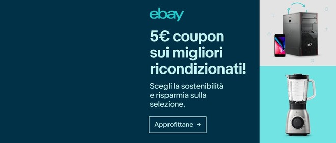 eBay ha lanciato una nuova campagna promozionale, questa volta dedicata ad una selezione di prodotti ricondizionati, appartenenti alle migliori marche. A partire da oggi, fino alle 23:59 del 7 marzo, verrà proposto un coupon da 5 euro che andrà a sommarsi agli sconti già attivi su ciascun articolo compatibile.