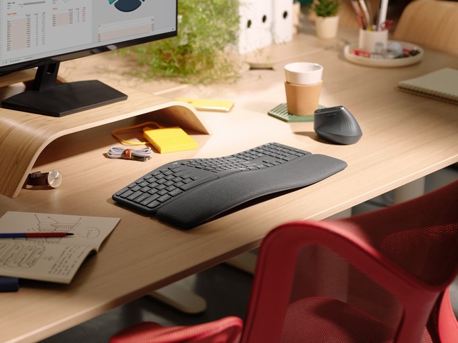 Partiamo dalla tastiera ERGO Wireless Split K860, erede della Logitech Ergo K860 annunciata lo scorso anno ed ulteriormente ottimizzata per offrire un’esperienza di digitazione naturale e lavorare in modo più produttivo. Parliamo di una periferica ergonomica avanzata che garantisce un migliore supporto per il polso che si traduce in un minore coinvolgimento muscolare, permettendo così all’utente una postura di digitazione più rilassata.